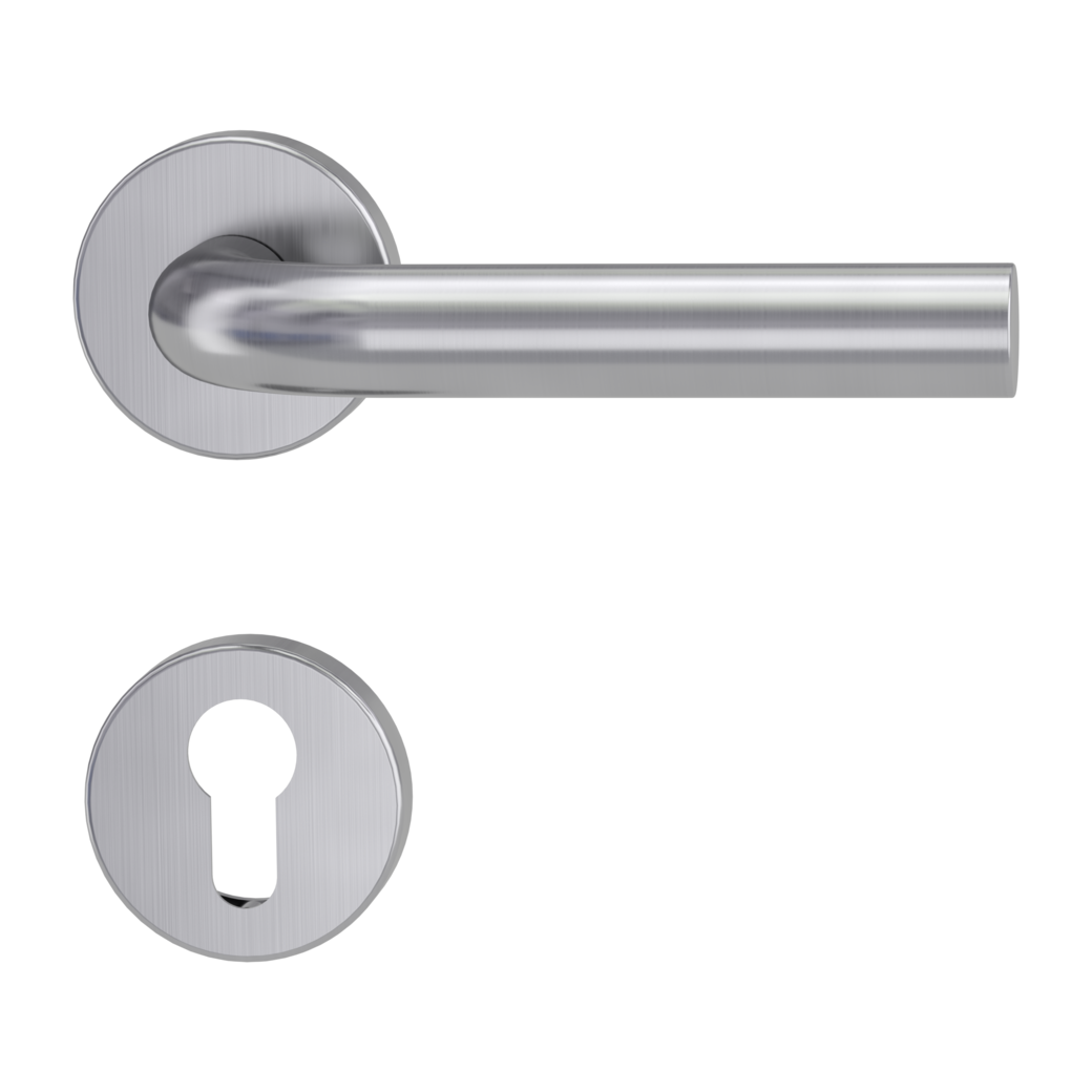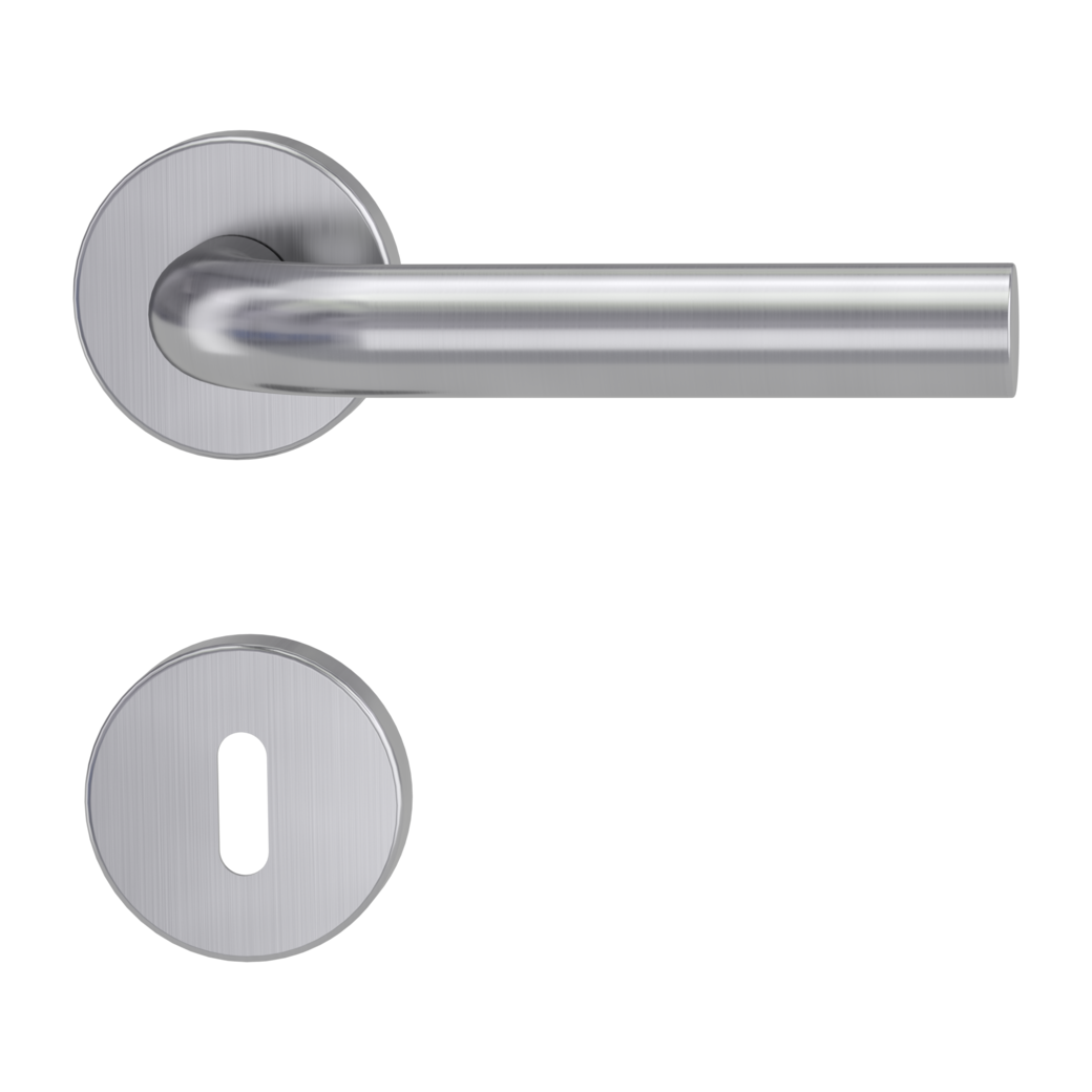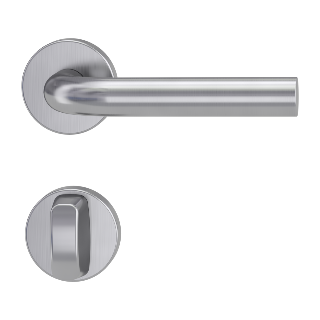 Die Türgriffgarnitur DANIELA von Griffwerk ist für Innentüren aus Holz und ist für Türstärken von 38-45mm geeignet. Die Oberfläche ist komplett Edelstahl matt. Der Türgriff ist geeignet für Türen ohne Bohrung für Schlüsselrosetten und hat runde Rosetten. Zudem erfüllt die Drückergarnitur die Standards der DIN EN 1906 für die Gebrauchsklasse 3.